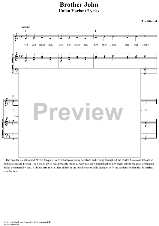 Digital Sheet Music for Brother John by Traditional scored for Piano/Vocal/Chords; id:260637