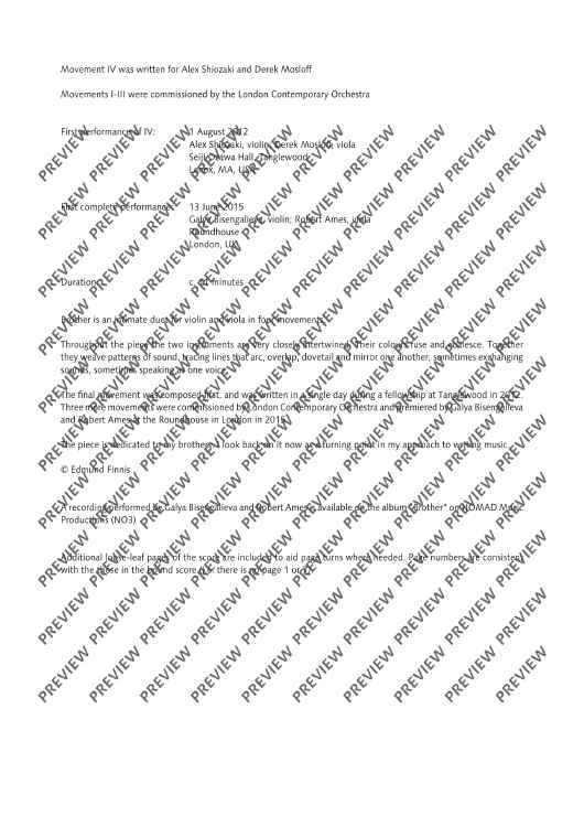 "Brother - Score" Sheet Music by Edmund Finnis