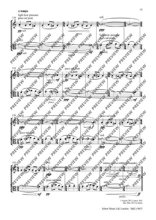 Brother is an intimate duet for violin and viola in four movements. Throughout the piece the two instruments are very closely intertwined. Their colours fuse and coalesce. Together they weave patterns of sound, tracing lines that arc, overlap, dovetail and mirror one another, sometimes exchanging sounds, sometimes speaking as one voice. The final movement was composed first, and was written in a single day while on a residency in Massachusetts in 2012. Three more movements were commissioned by London Contemporary Orchestra and premiered by Galya Bisengalieva and Robert Ames at the Roundhouse in London in 2015. The piece is dedicated to my brothers. I look back on it now as a turning point in my approach to writing music. © Edmund Finnis