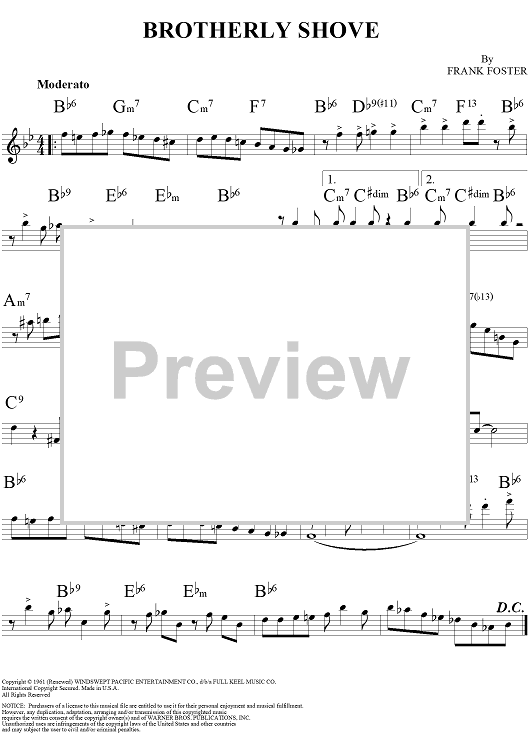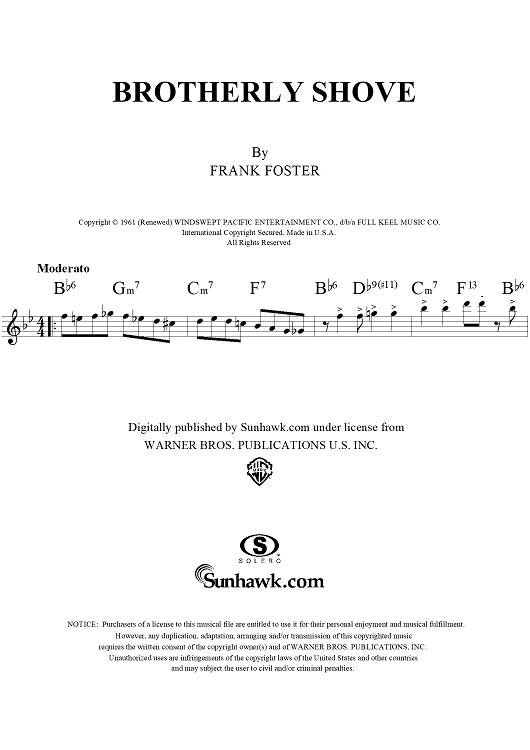 Digital Sheet Music for Brotherly Shove by Count Basie, Frank Foster scored for Lead Sheet; id:269455