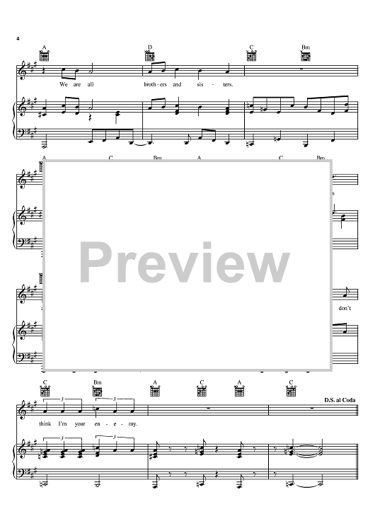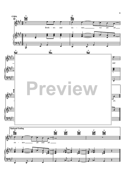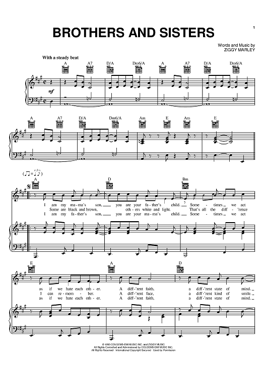 Digital Sheet Music for Brothers And Sisters by Ziggy Marley scored for Piano/Vocal/Chords; id:383565