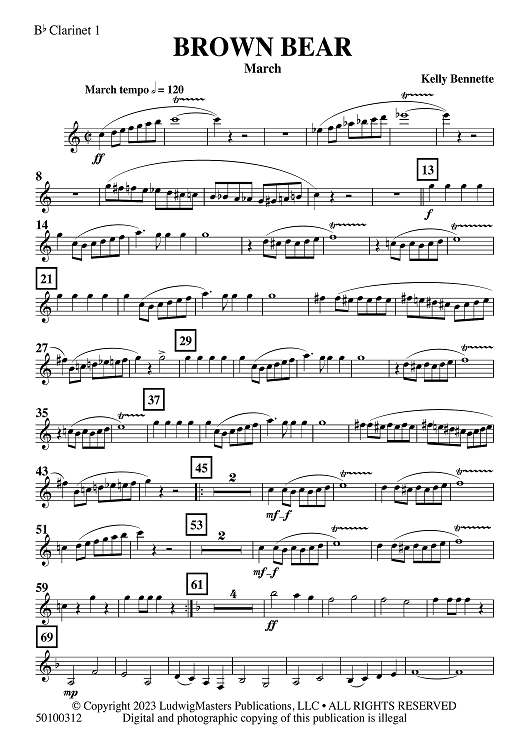 Digital Sheet Music for Brown Bear - Bb Clarinet 1 by Kelly Bennette scored for Concert Band; id:509640