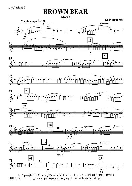 Digital Sheet Music for Brown Bear - Bb Clarinet 2 by Kelly Bennette scored for Concert Band; id:509641