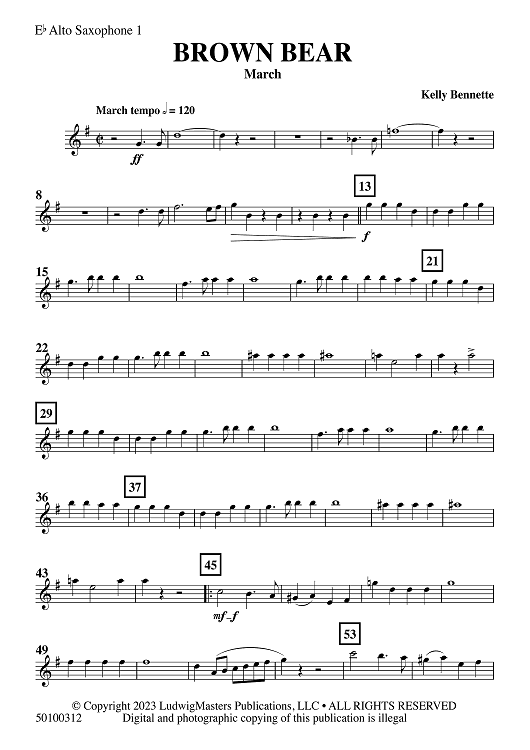 Digital Sheet Music for Brown Bear - Eb Alto Saxophone 1 by Kelly Bennette scored for Concert Band; id:509645