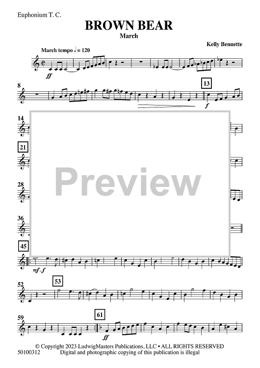 Digital Sheet Music for Brown Bear - Euphoniums TC/BC by Kelly Bennette scored for Concert Band; id:509659