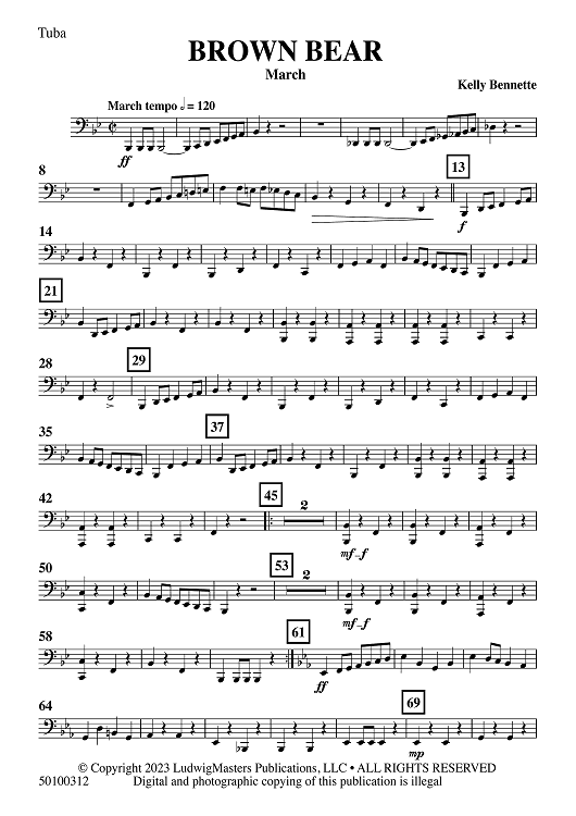 Digital Sheet Music for Brown Bear - Tuba by Kelly Bennette scored for Concert Band; id:509660