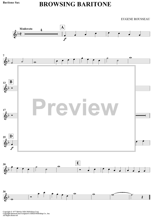 Digital Sheet Music for Browsing Baritone by Eugene Rousseau scored for Eb Baritone Sax/Piano; id:439548
