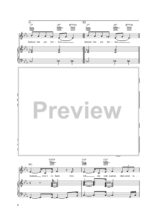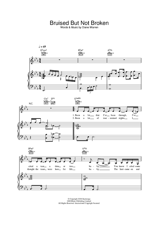 Digital Sheet Music for Bruised But Not Broken by Diane Warren, Joss Stone scored for Piano/Vocal/Chords; id:397122