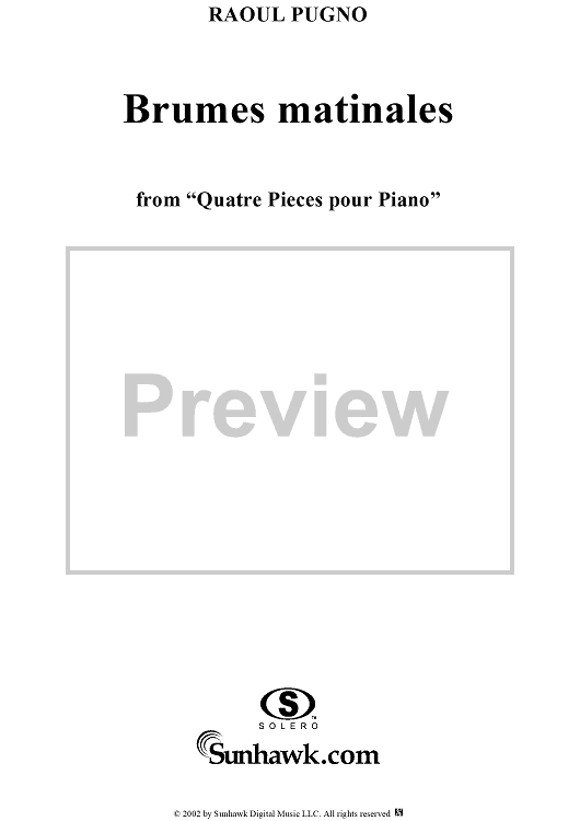 "Brumes matinales" Sheet Music by Raoul Pugno