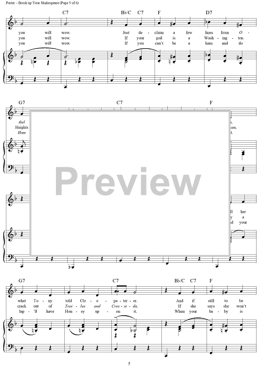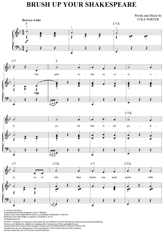Digital Sheet Music for Brush up Your Shakespeare by Cole Porter scored for Piano/Vocal/Chords; id:297855