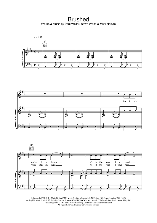 Digital Sheet Music for Brushed by Paul Weller scored for Piano/Vocal/Chords; id:376516