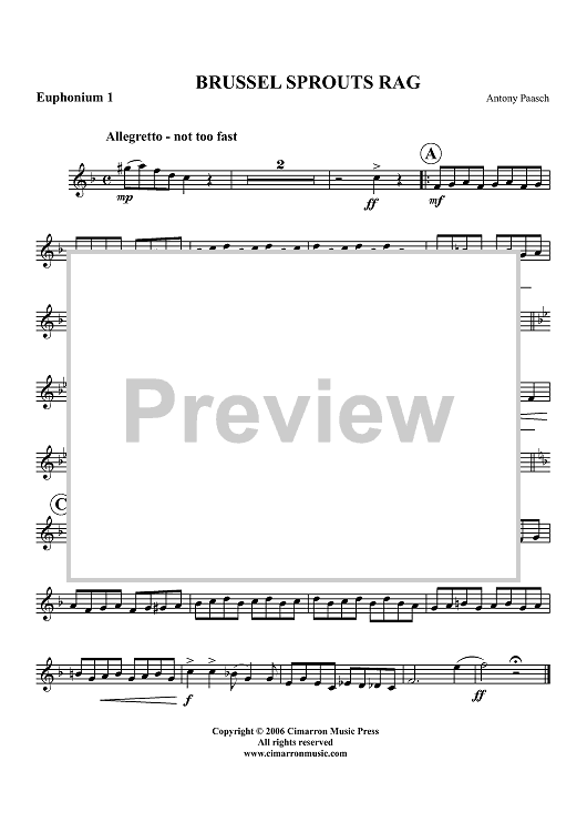 "Brussel Sprouts Rag - Euphonium 1 BC/TC" Sheet Music by Antony Paasch