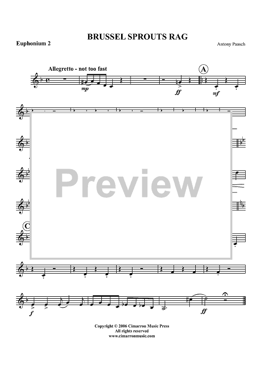 "Brussel Sprouts Rag - Euphonium 2 BC/TC" Sheet Music by Antony Paasch