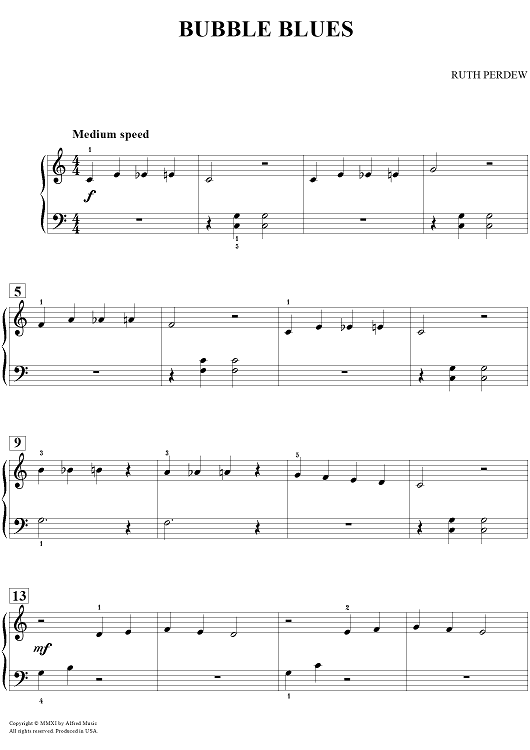 Digital Sheet Music for Bubble Blues by Ruth Perdew scored for Piano; id:464243