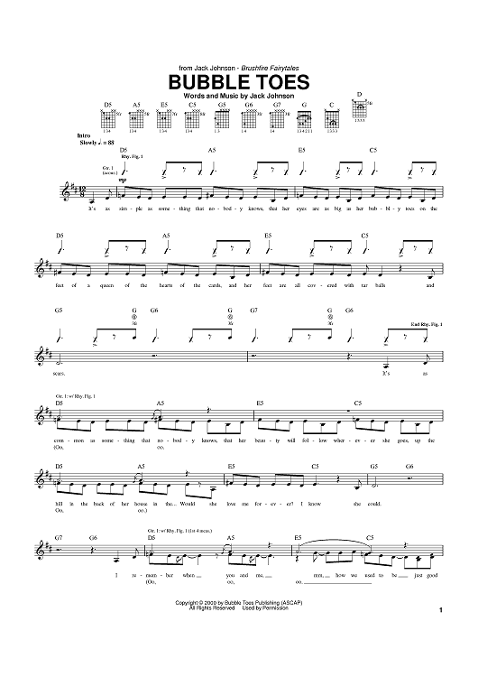 "Bubble Toes" Sheet Music by Jack Johnson