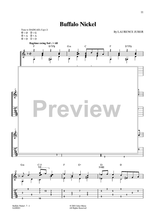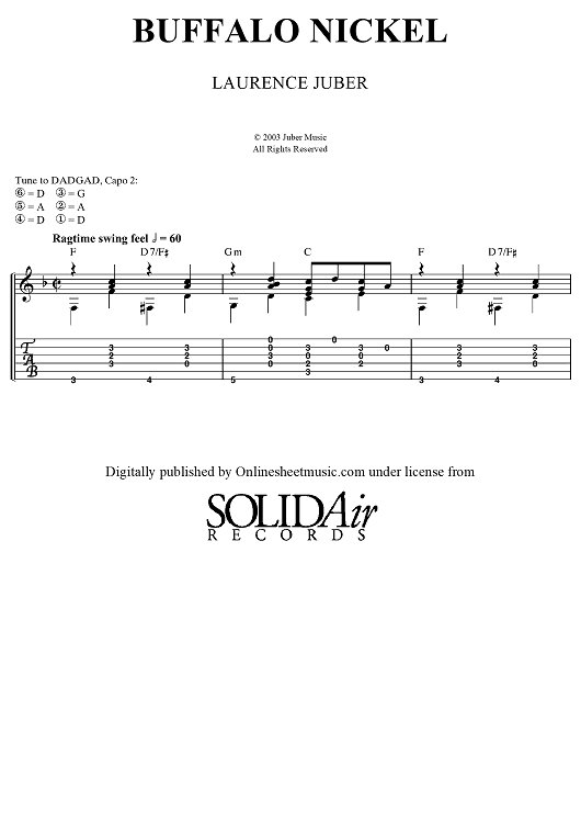 Digital Sheet Music for Buffalo Nickel (No MP3) by , Laurence Juber scored for Guitar Tab; id:451774