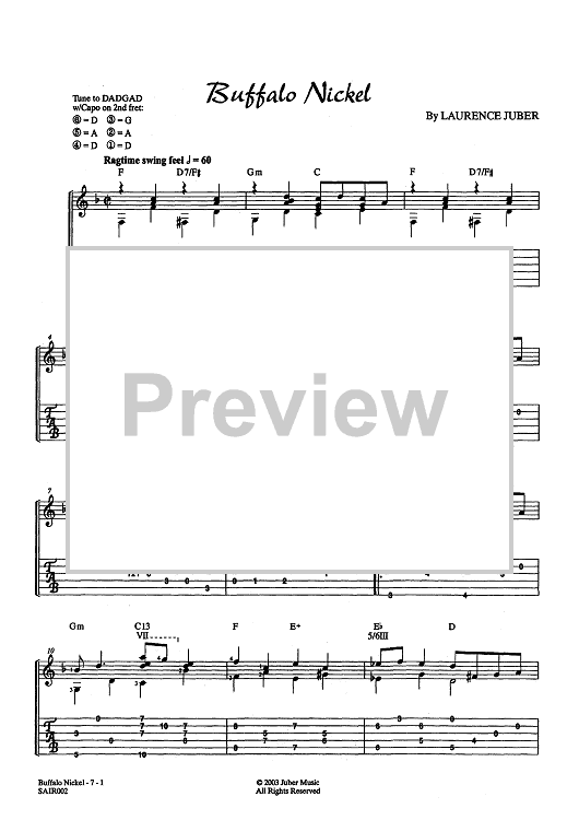 Digital Sheet Music for Buffalo Nickel (No MP3) by , Laurence Juber scored for Guitar Tab; id:452173