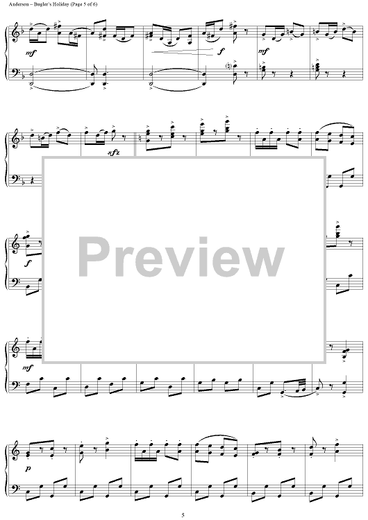 Digital Sheet Music for Bugler's Holiday by Leroy Anderson scored for Piano Solo; id:277292