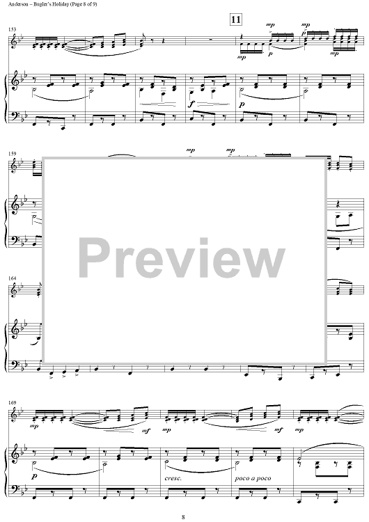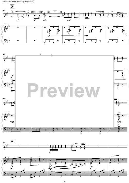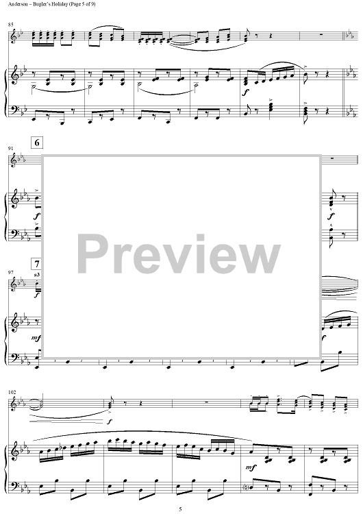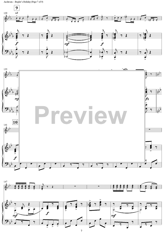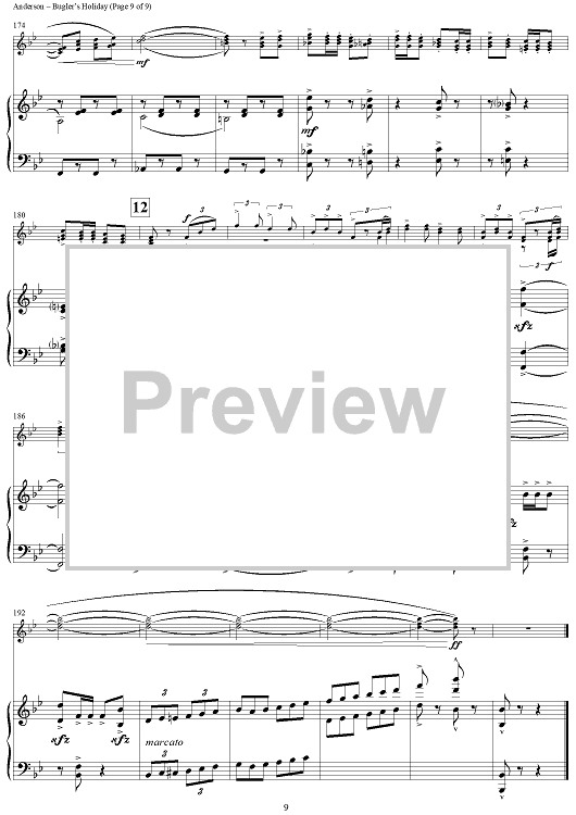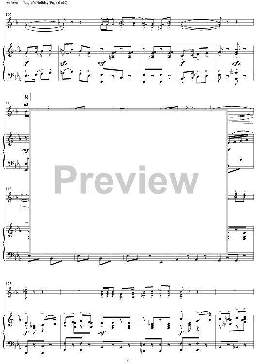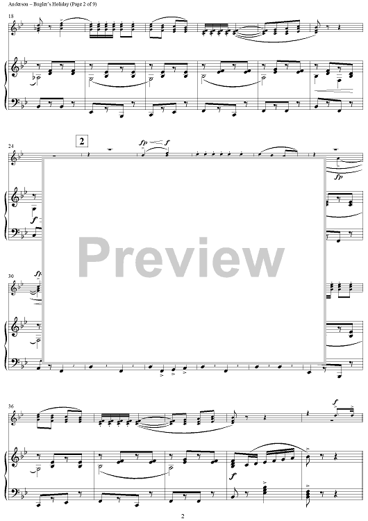 Digital Sheet Music for Bugler's Holiday - Piano Score by Leroy Anderson scored for Trumpet Trio/Piano; id:318600