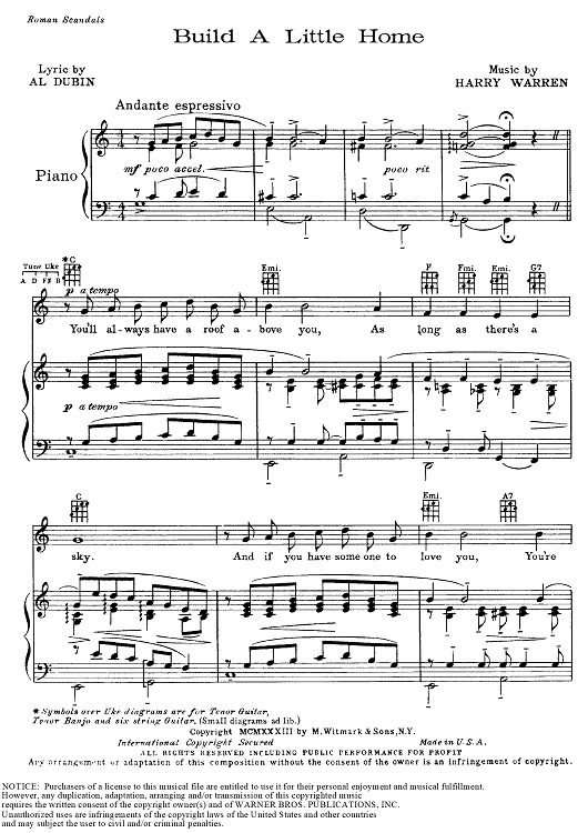 Digital Sheet Music for Build a Little Home by Eddie Cantor, Harry Warren, Al Dubin scored for Piano/Vocal/Chords; id:174852