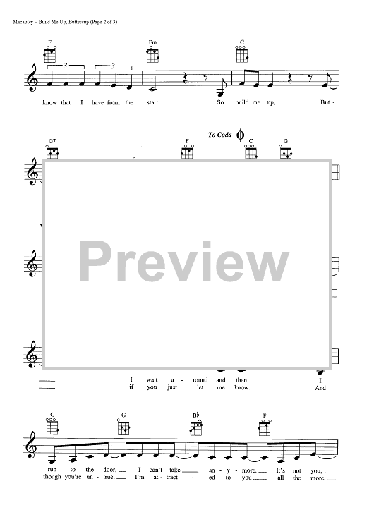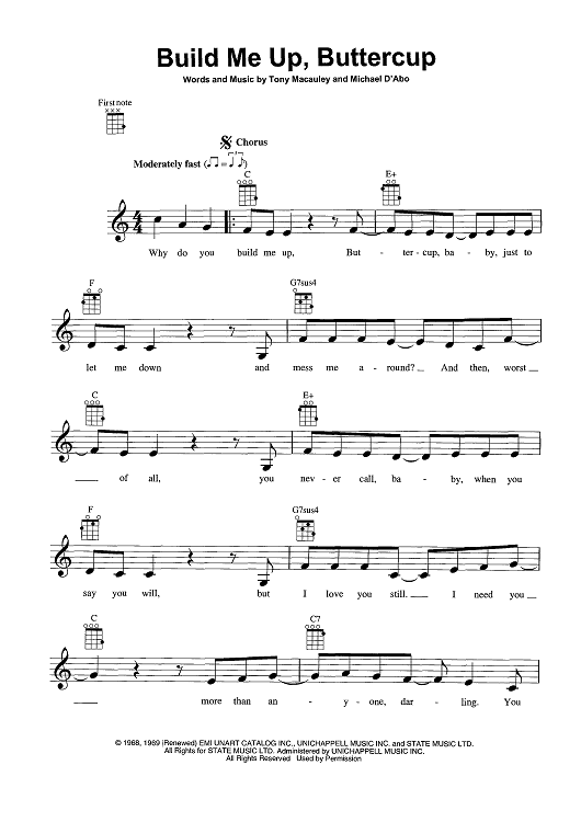 Digital Sheet Music for Build Me Up, Buttercup by The Foundations, Michael D'Abo, Tony MacAuley scored for Ukulele/Vocal; id:448952
