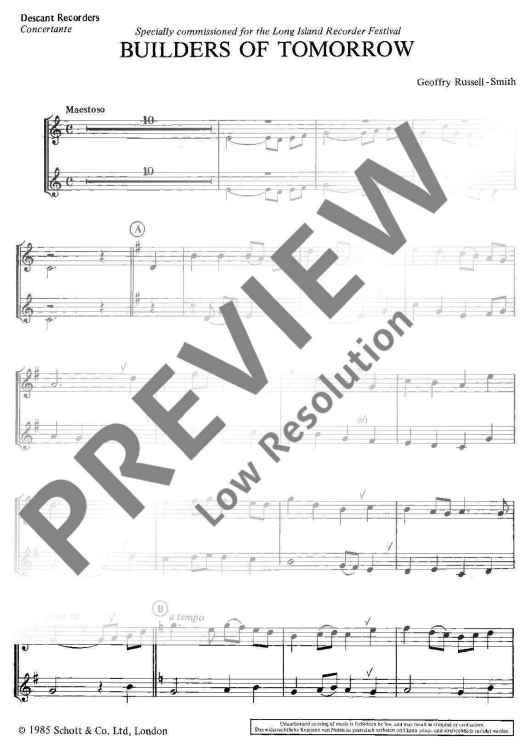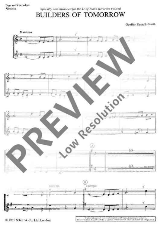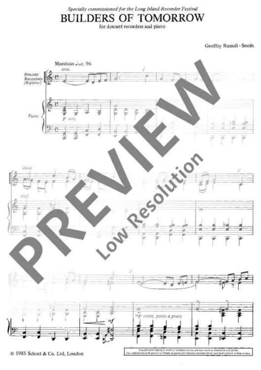 Digital Sheet Music for Builders of Tomorrow by Geoffry Russell-Smith scored for 2 Descant Recorders And Piano; id:474529