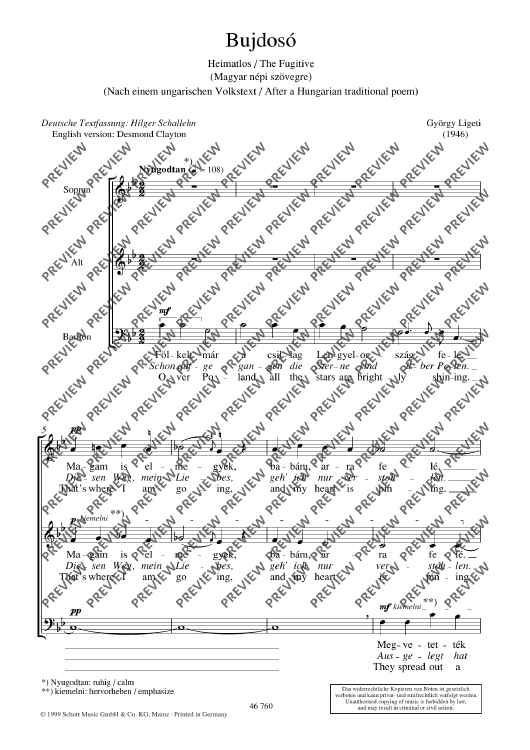 Digital Sheet Music for Bujdosó - Bedrückung - Choral Score by György Ligeti scored for Mixed Choir (sabar); id:471809