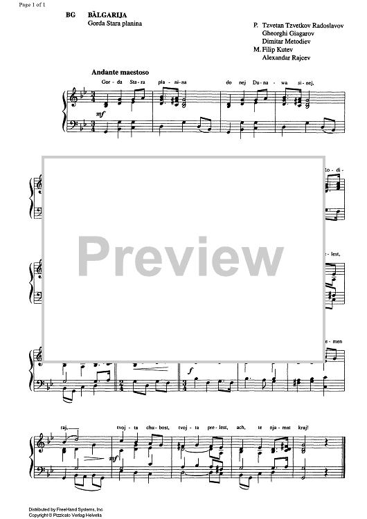 Digital Sheet Music for Bulgaria - Gorda Stara Planina by Roberto Cittadini, Filip Kutev, Alexandar Rajcev scored for Piano/Vocal; id:328956