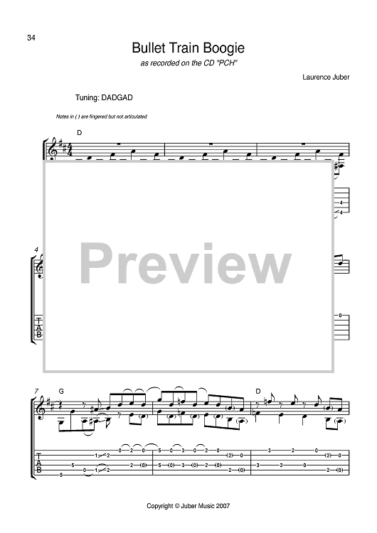 Digital Sheet Music for Bullet Train Boogie (No MP3) by Laurence Juber scored for Guitar Tab; id:451985