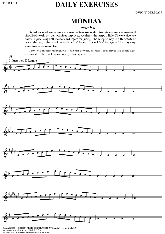 "Bunny Berigan's Daily Exercises for Trumpet" Sheet Music by Bunny Berigan