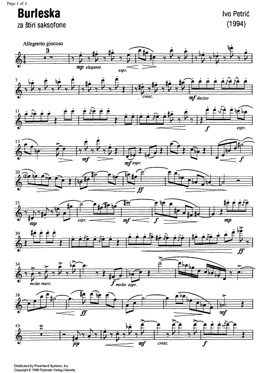 Digital Sheet Music for Burleska - B-flat Soprano Saxophone by , Ivo Petric scored for Saxophone Quartet; id:335673