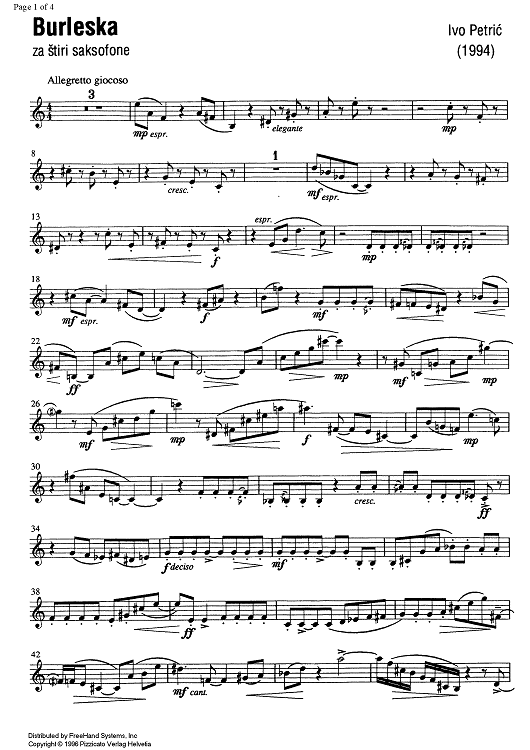 Digital Sheet Music for Burleska - E-flat Baritone Saxophone by , Ivo Petric scored for Saxophone Quartet; id:335676