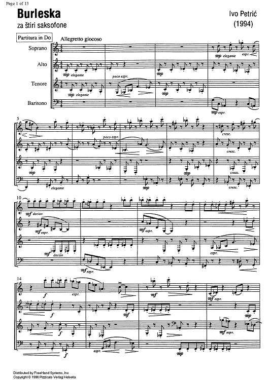 Digital Sheet Music for Burleska - Score by , Ivo Petric scored for Saxophone Quartet; id:335672