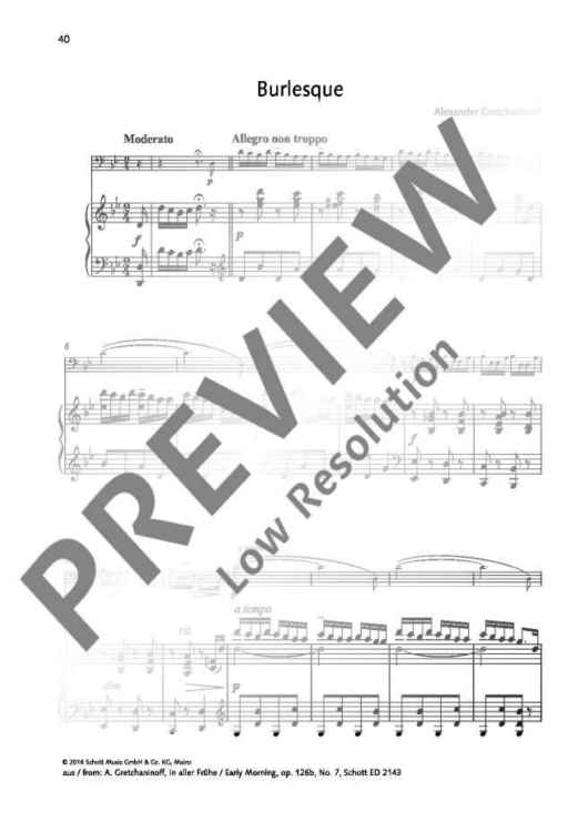 Digital Sheet Music for Burlesque by Alexandr Gretchaninow scored for Cello And Piano; id:489984