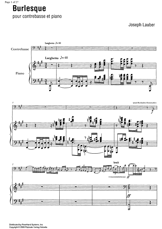 Digital Sheet Music for Burlesque - Score by , Joseph Lauber scored for Double Bass/Piano; id:335045