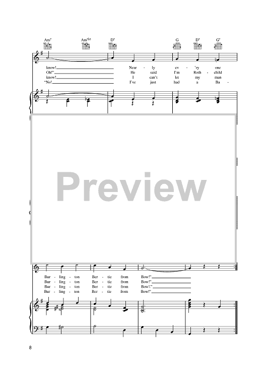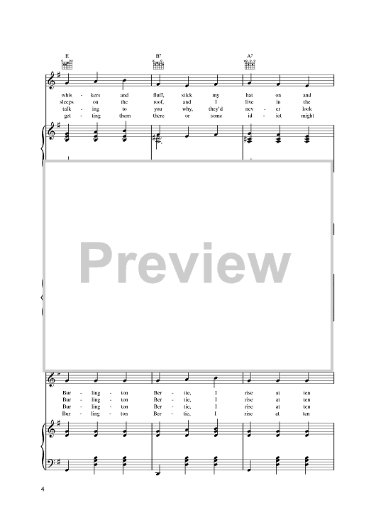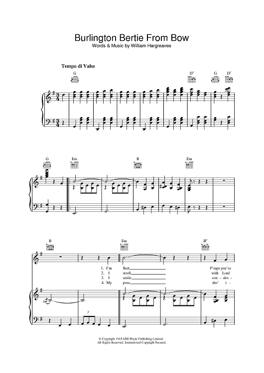 Digital Sheet Music for Burlington Bertie From Bow by William Hargreaves scored for Piano/Vocal/Chords; id:392735