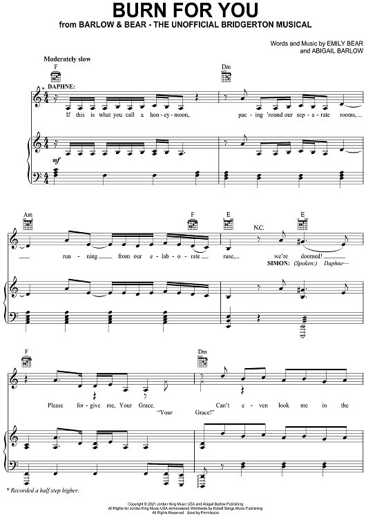 Digital Sheet Music for Burn For You by Emily Bear, Abigail Barlow scored for Piano/Vocal/Chords; id:470077