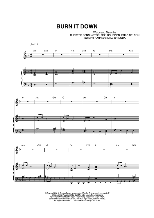 Digital Sheet Music for Burn It Down by Linkin Park, Mike Shinoda, Joe Hahn, Brad Delson, Rob Bourdon, Chester Bennington scored for Piano/Vocal/Chords; id:432865