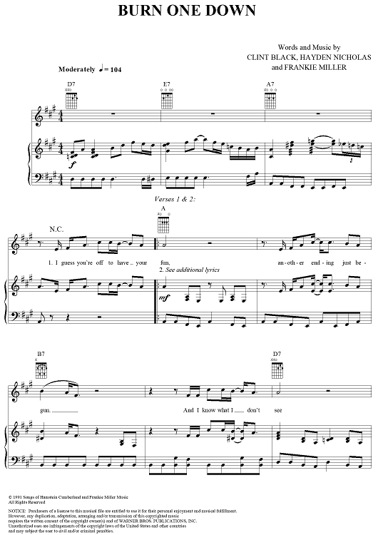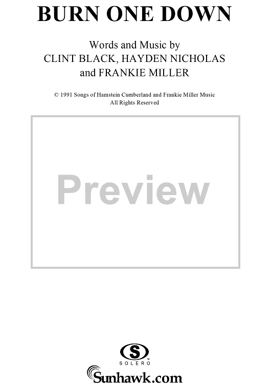 Digital Sheet Music for Burn One Down by Clint Black, Hayden Nicholas, Frankie Miller scored for Piano/Vocal/Chords; id:220527