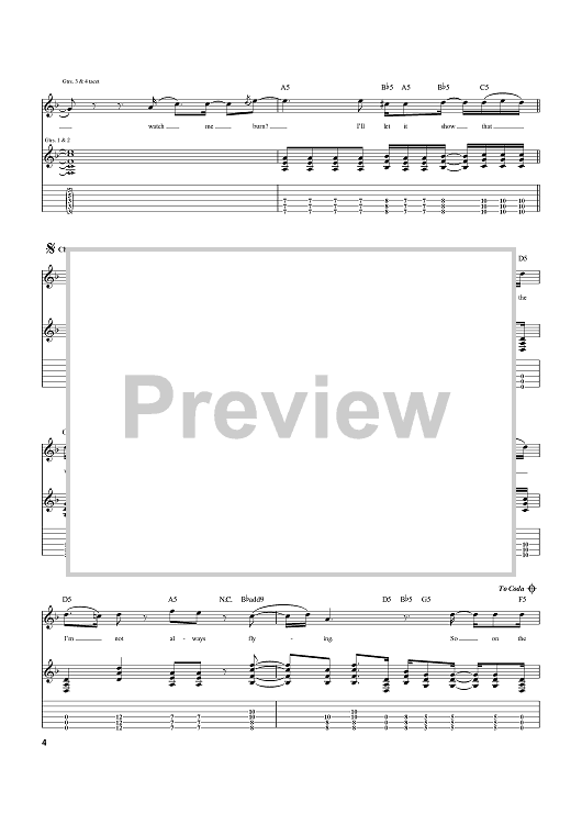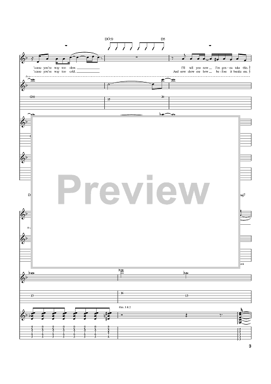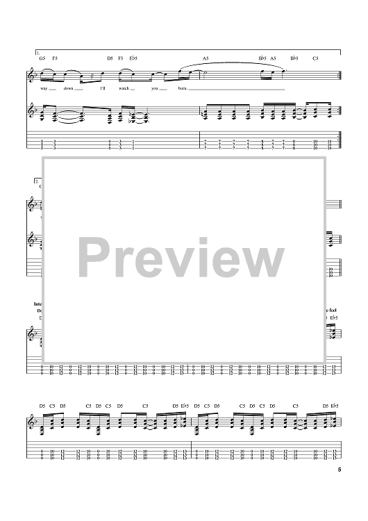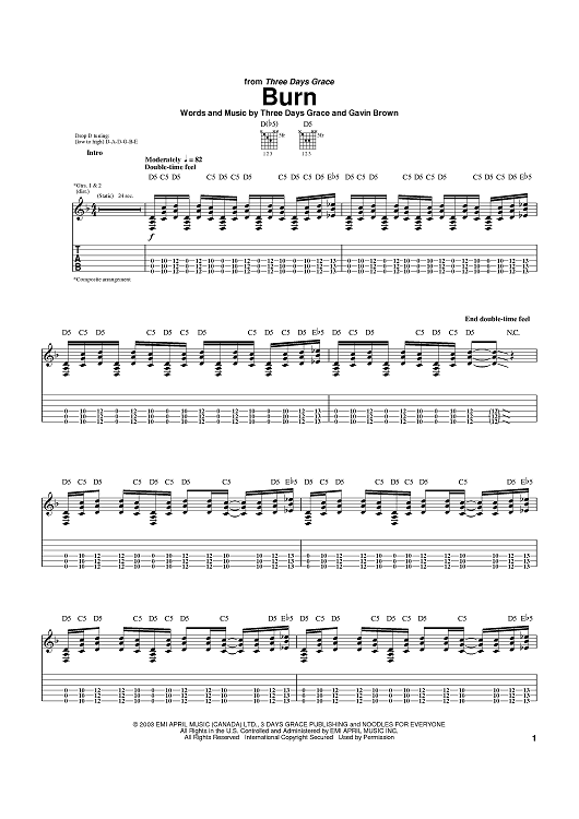 Digital Sheet Music for Burn by Golden Brown, Three Days Grace scored for Guitar Tab; id:373631