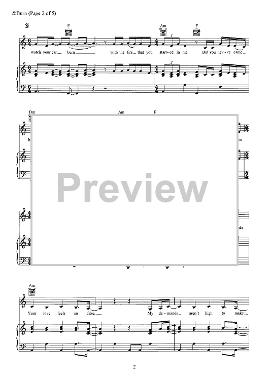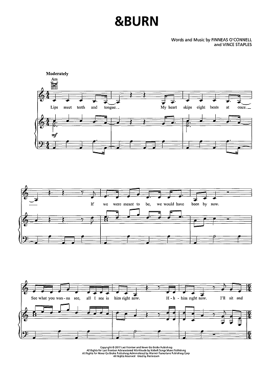Digital Sheet Music for &Burn by Finneas Baird O'Connell, Billie Eilish, Vince Staples scored for Piano/Vocal/Chords; id:467683