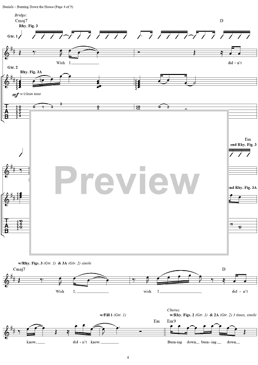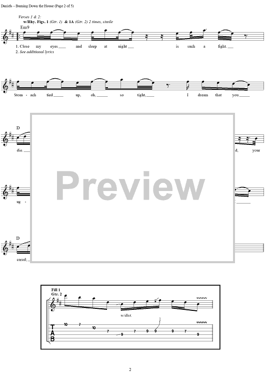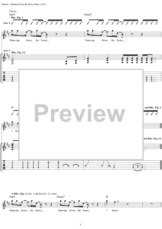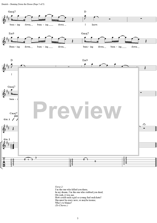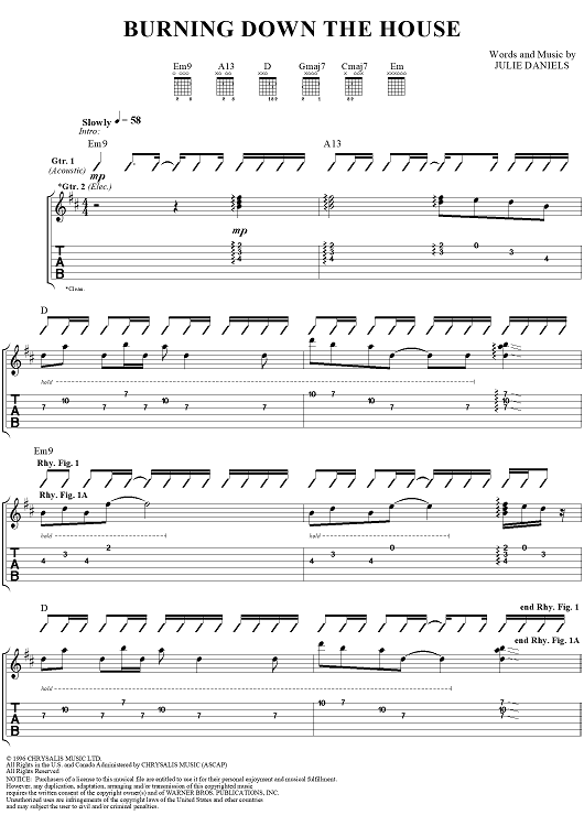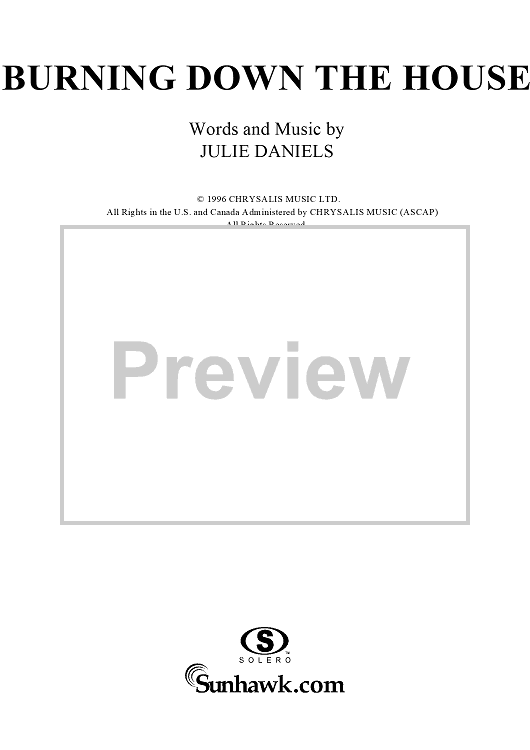 Digital Sheet Music for Burning Down the House by Julie Daniels, Star 69 scored for Guitar Tab/Vocal; id:114042