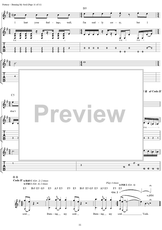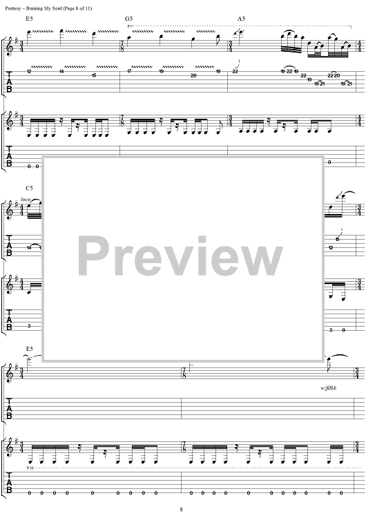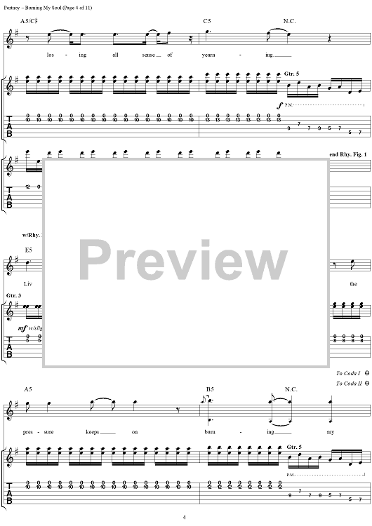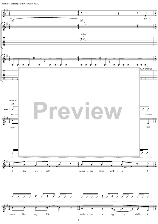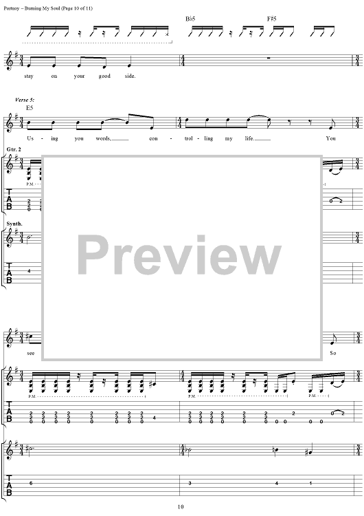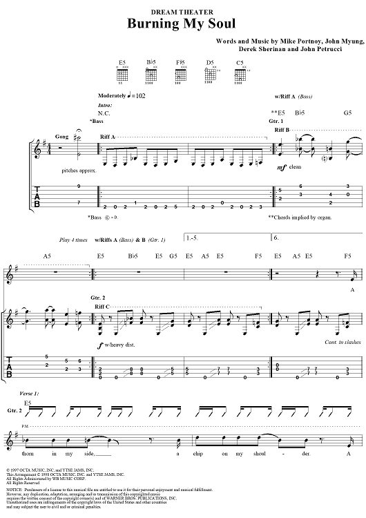 Digital Sheet Music for Burning My Soul by John Myung, Michael Portnoy, Derek Sherinian, Dream Theater, John Petrucci scored for Guitar Tab/Vocal; id:109802