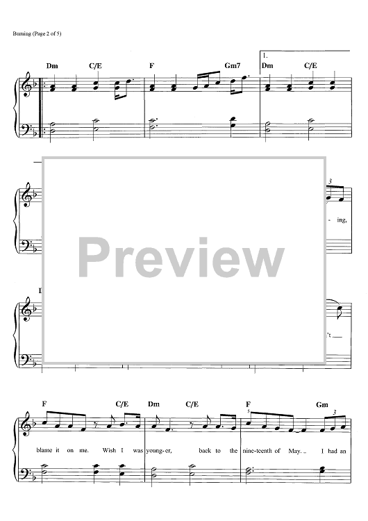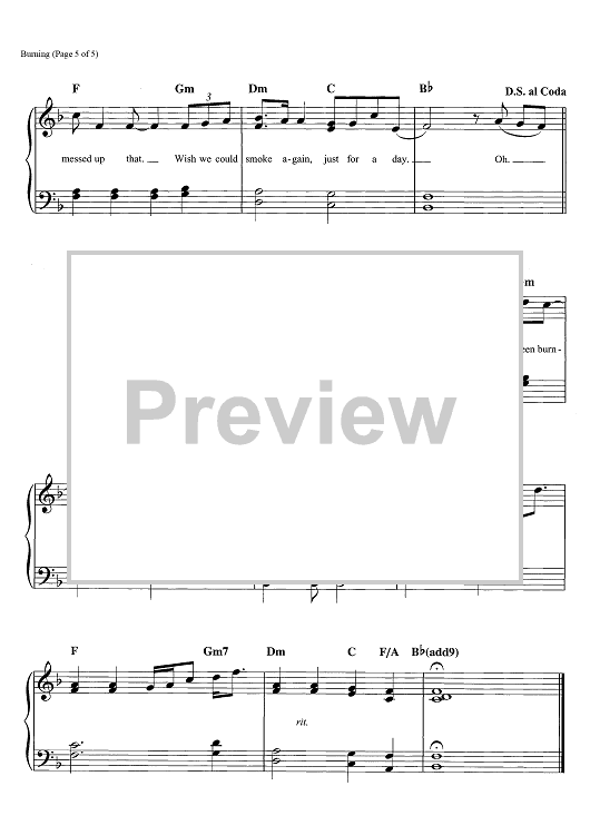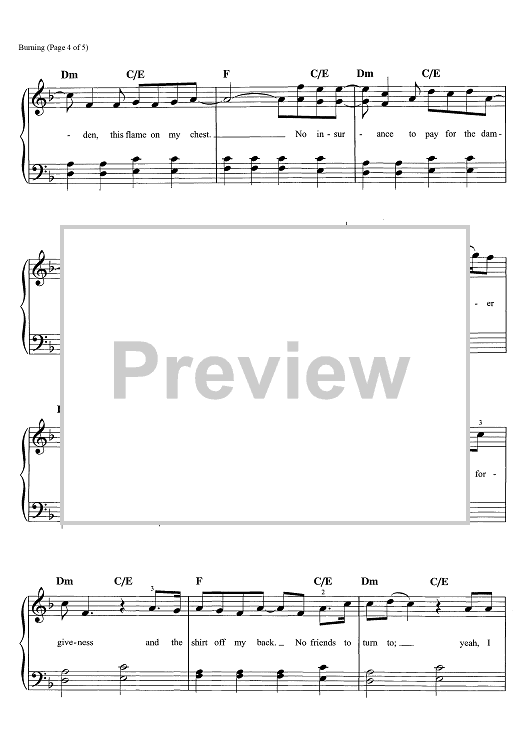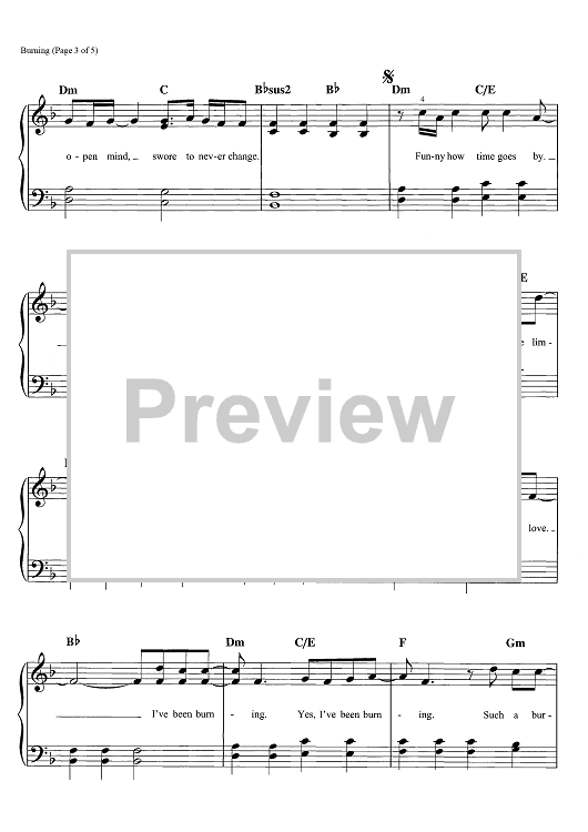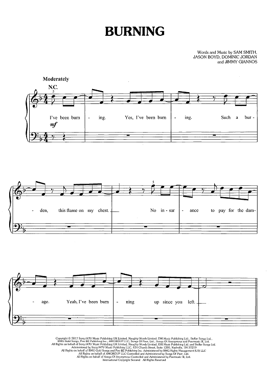 Digital Sheet Music for Burning by Jason Boyd, Sam Smith, Dominic Jordan, James Giannos scored for Easy Piano/Vocal/Chords; id:466221
