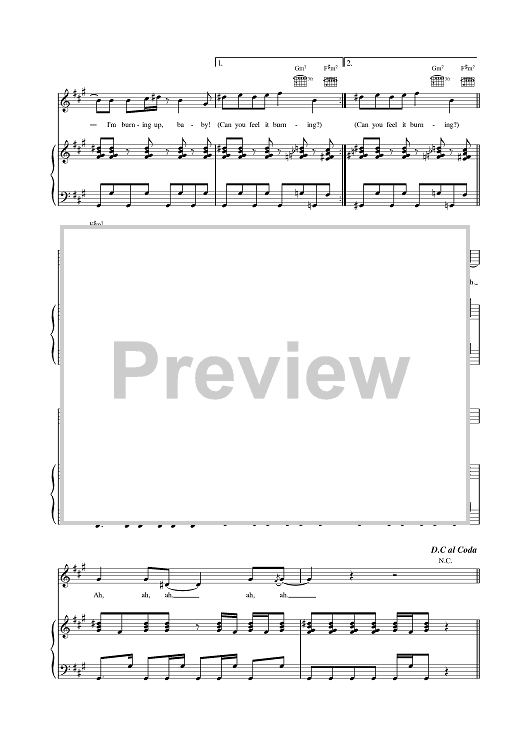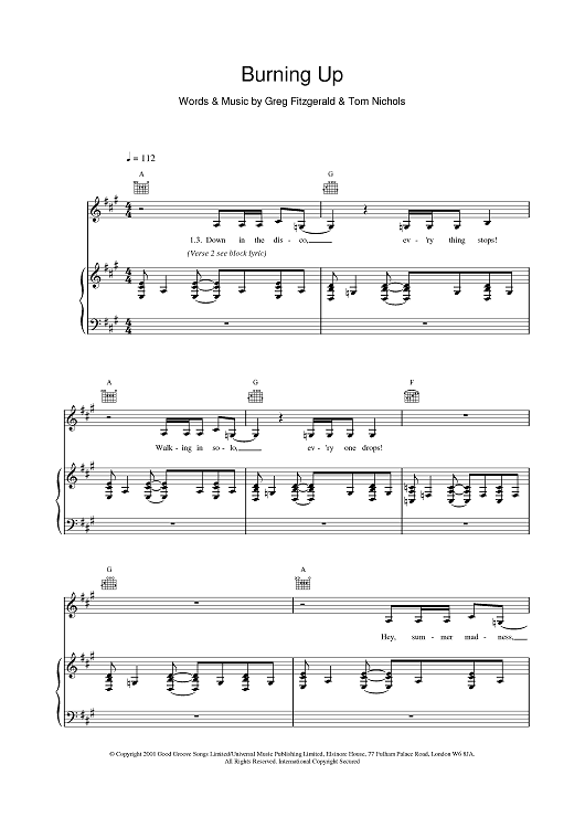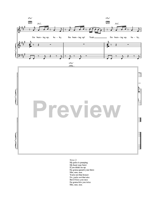 Digital Sheet Music for Burning Up by Kylie Minogue, Greg Fitzgerald, Tom Nichols scored for Piano/Vocal/Chords; id:380152