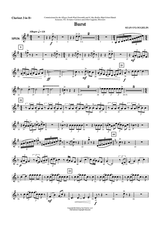 Digital Sheet Music for Burst - Clarinet 3 in B-flat by Sean O'Loughlin scored for Concert Band; id:409465