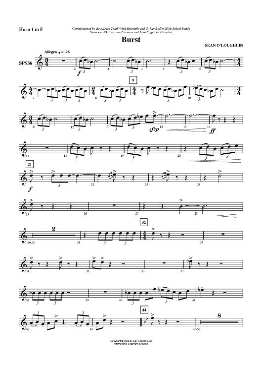 Digital Sheet Music for Burst - Horn in F 1 by Sean O'Loughlin scored for Concert Band; id:409475