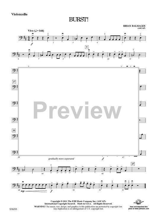 "BURST! - Violoncello" Sheet Music by Brian Balmages