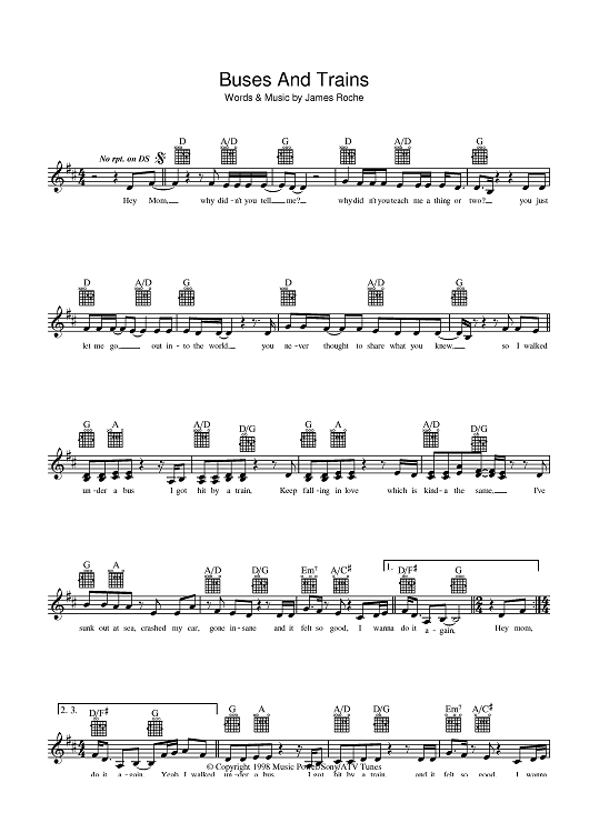 Digital Sheet Music for Buses And Trains by Bachelor Girl, James Roche scored for Lead Sheet; id:401886