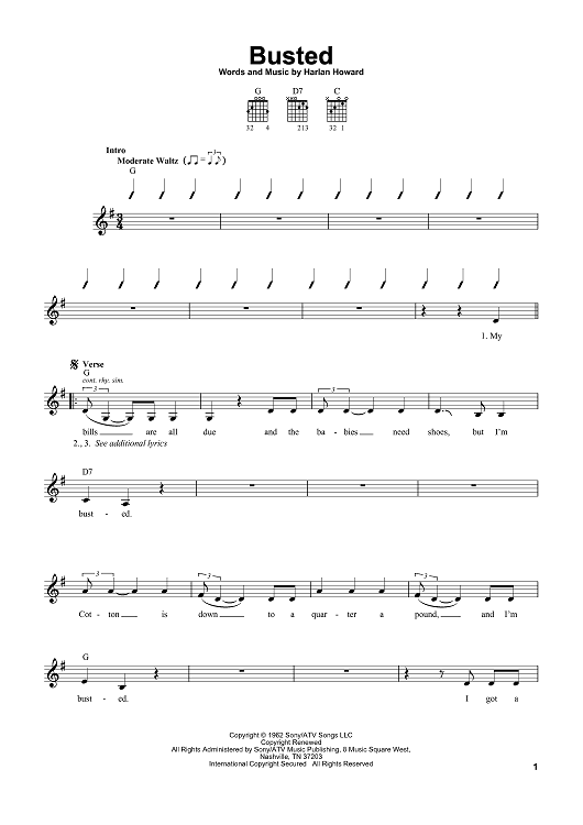 Digital Sheet Music for Busted by Johnny Cash, Harlan Howard, Ray Charles, John Conlee scored for Lead Sheet with Guitar Grids; id:369478